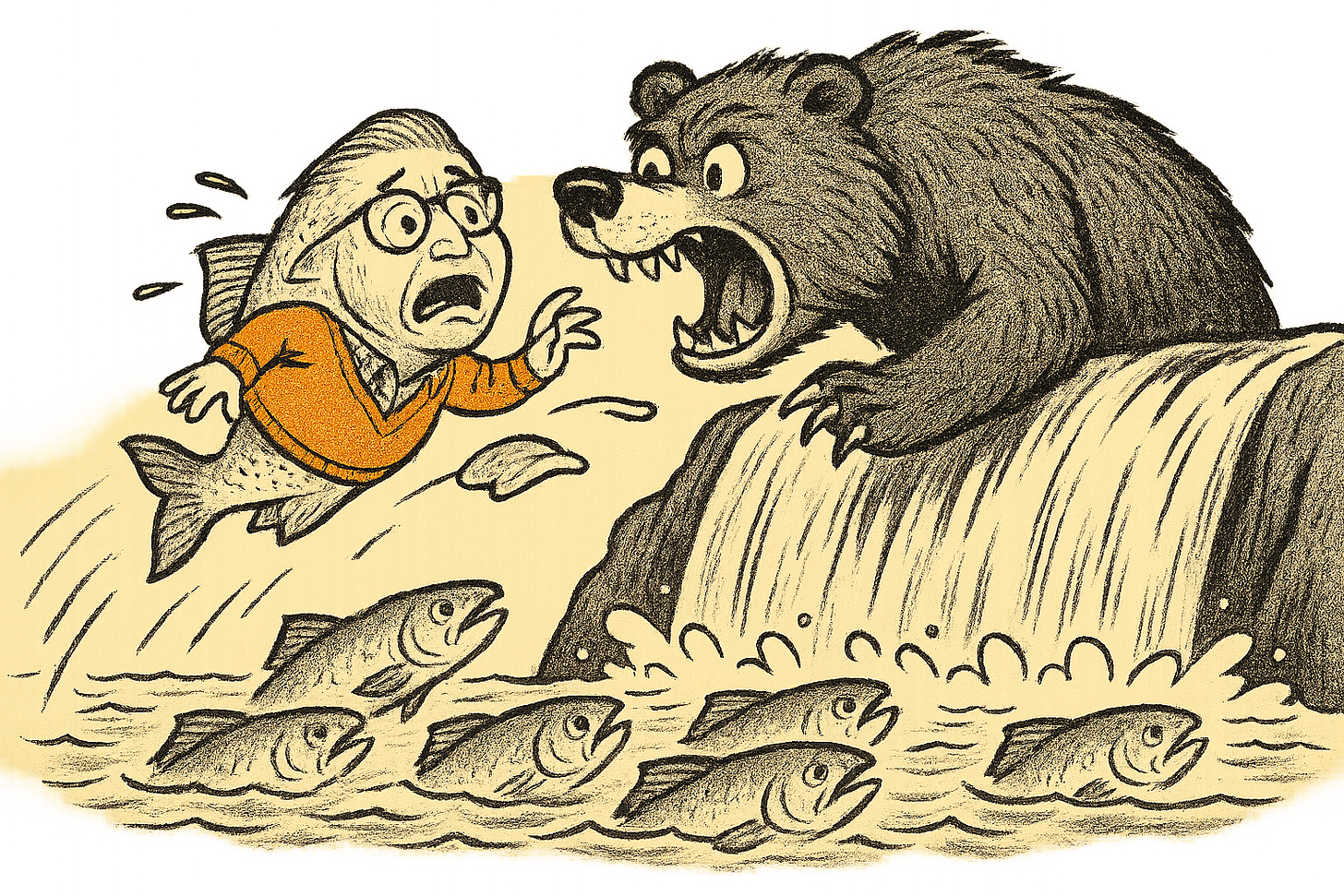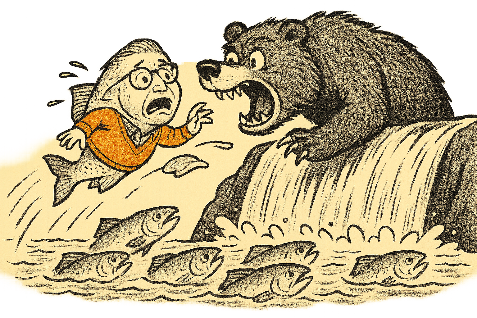 Twenty years in corporate marketing taught me one thing: we're all spawning salmon desperately swimming upstream, convinced we're making progress while programmed for the same inevitable end. Sure, there were moments of brilliance and friendship, but mostly it was exhausting bureaucracy where if you were unlucky enough to reach the C-suite, some grizzly bear investor or low EQ CEO was probably going to snatch you right out of the water, not because you weren't performing, but because they decided their particular salmon wasn't going to be fat enough at the end of the journey.
